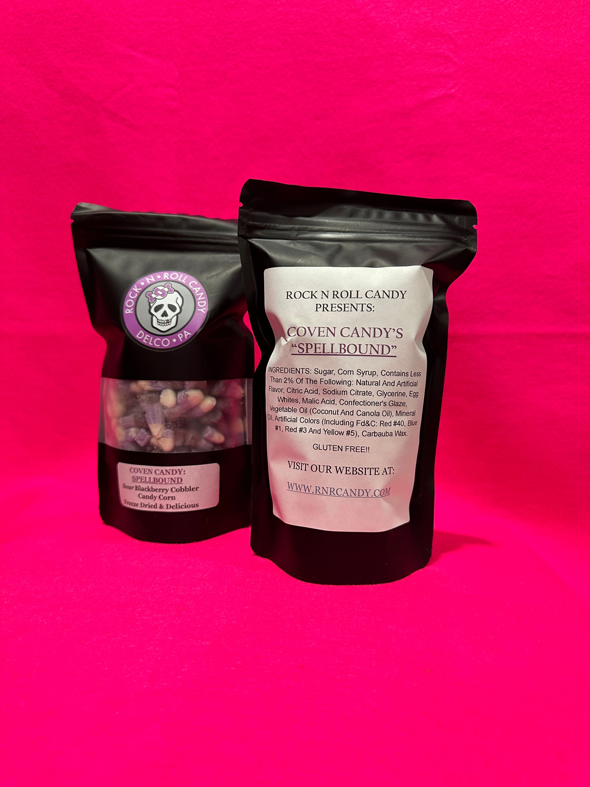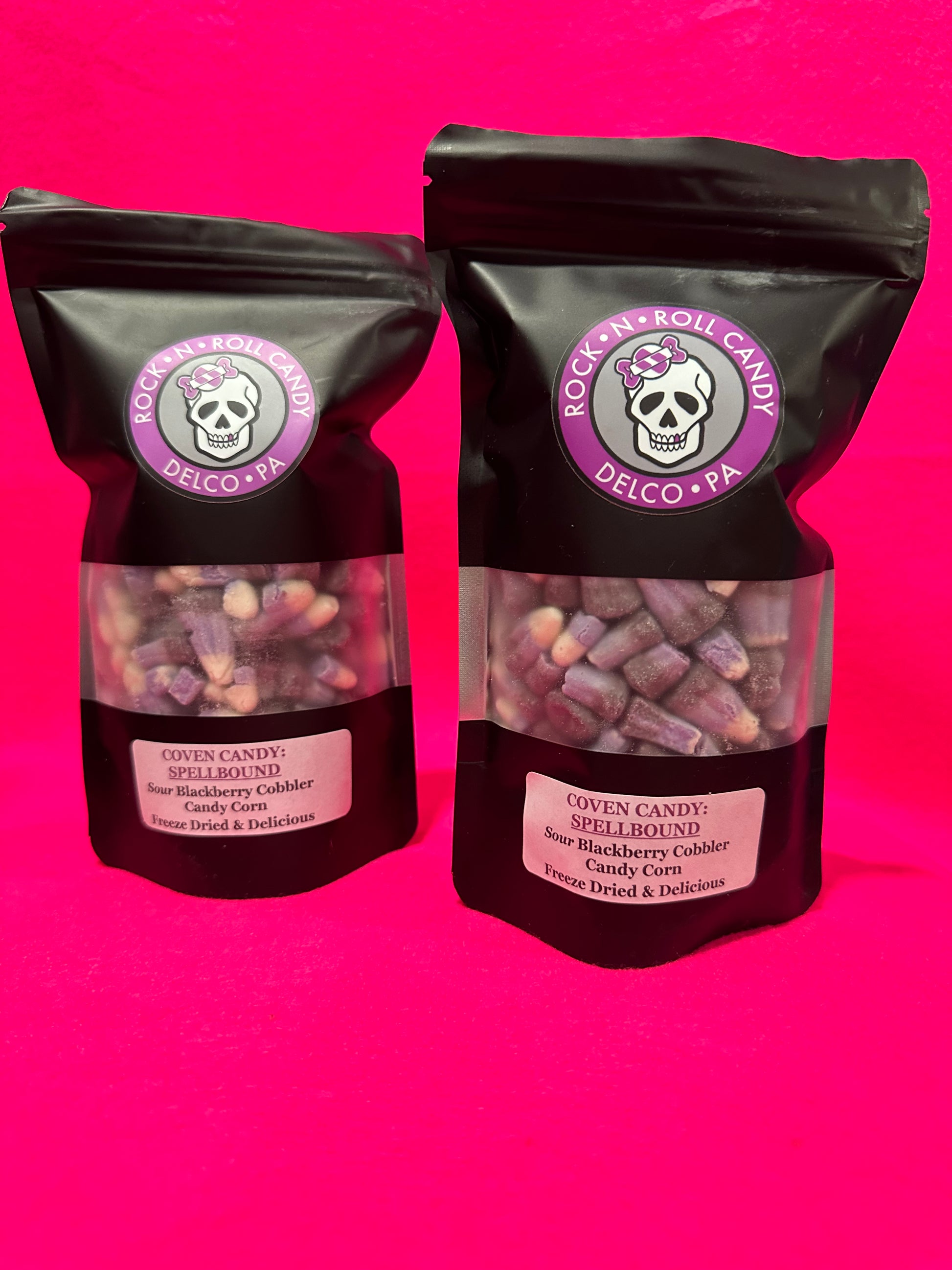 A specialty candy done for our friends at COVEN PROMOTIONS. A Blackberry Cobbler Candy Corn freeze dried with our sour mix. A sweet and sour crunchy treat.
